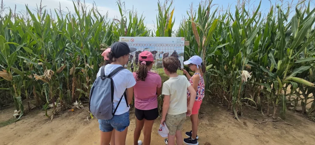 Un vaste labyrinthe de maïs à parcourir avec un plan, ponctué d’énigmes ludiques accessibles à tous.